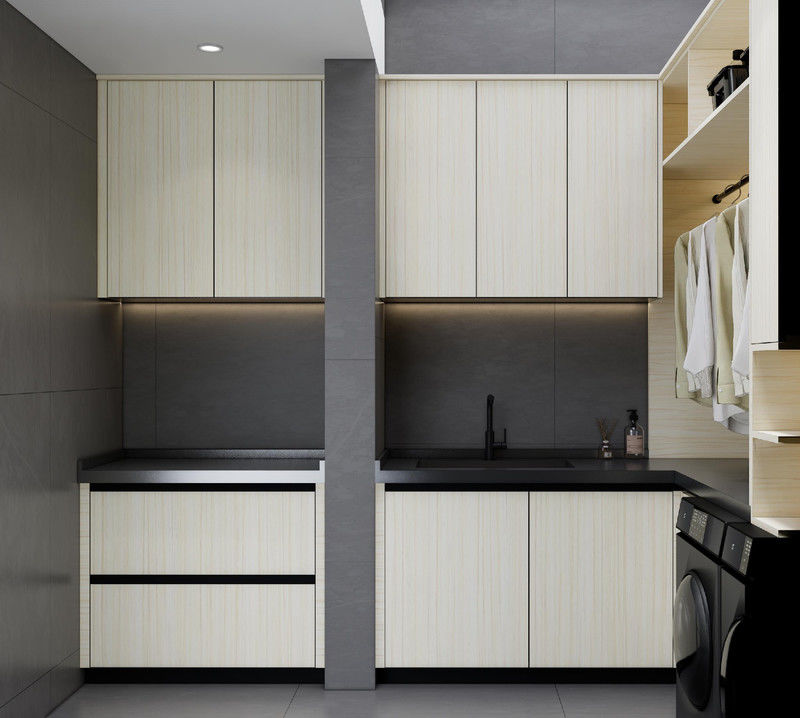 | Q: Why does this Elegant And Efficient Space Utilization Laundry Room Cupboards combine a differentiated finish palette with stainless steel structure? The value is that the visible finish mix gives the project a warmer, more residential visual identity while Stainless steel cabinet structure keeps the cabinet system easy to maintain and more credible for long-term use. |