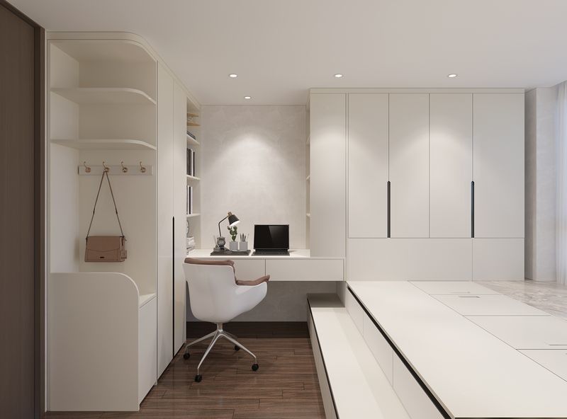 | Study Area | Integrated desk with floating design, creating a seamless workspace adjacent to the tatami bed. |