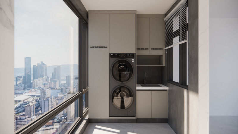 | Built-In Features | Designed to house washing machines and dryers, with integrated space for a utility sink. |