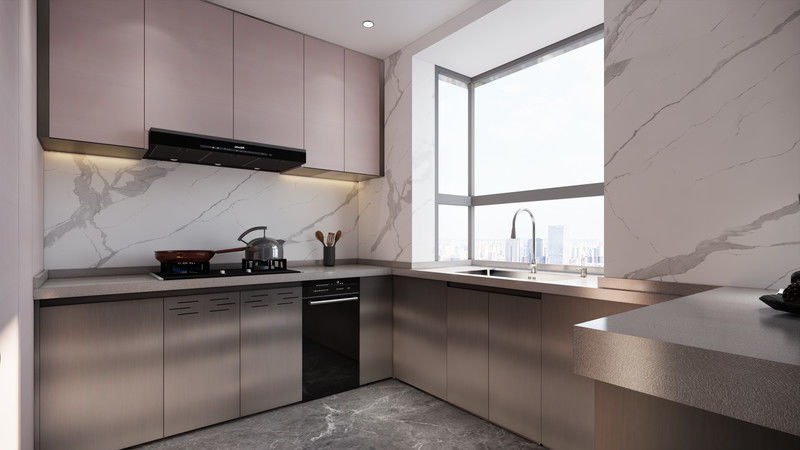 | Q: Is this Modern Sleek Elegant Pink And Original Finish Stainless mainly decorative or genuinely project-ready? It reads as project-ready because the page still ties the styling back to Stainless steel cabinet structure, Quartz countertop, and appliance planning. That keeps design language connected to execution logic. |