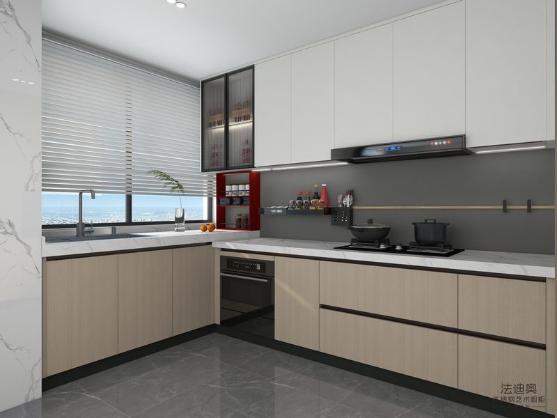 Transform your kitchen into a seamless blend of elegance and functionality with the Fadior Modern Stainless Steel Kitchen Cabinet. Featuring a stylish wood grain finish paired with crisp white cabinets, this design perfectly balances contemporary aesthetics with timeless durability. The vibrant red open shelf adds a pop of color, making your kitchen both practical and visually appealing. Crafted from 100% stainless steel, this cabinet ensures long-lasting performance, resistance to moisture, and ease of maintenance. With Fadior's expertise in full-house stainless steel customization, this kitchen embodies superior craftsmanship and innovation tailored for modern living.