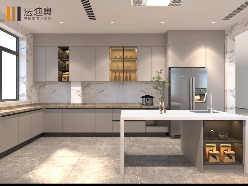 | Q: What finish or visual style does this Modern Elegance U Shaped Stainless Steel Kitchen Cabinet With Seamless emphasize? The visual direction is anchored by Soft gray tones with integrated lighting to create a soft, modern ambiance and White quartz stone countertop, durable, stain-resistant, and easy to maintain. Using these product-level cues in the page body improves relevance for long-tail searches because the wording stays tied to what this specific product actually presents. |