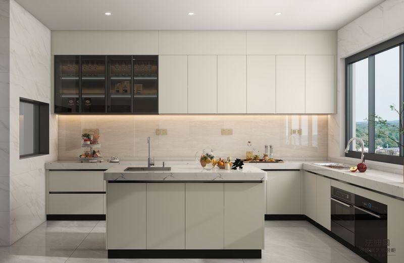 | Q: What defines the design of this Off-White Stainless Steel U-Shaped Kitchen Cabinet With Seamlessly Integrated Design? This Off-White Stainless Steel U-Shaped Kitchen Cabinet With Seamlessly Integrated Design is shaped around Off-white, soft matte finish for a modern and refined look, A glass-paneled wall cabinet with mirrored accents for an elegant and reflective aesthetic, and Multiple deep drawers, adjustable shelves, and soft-close hinges for smooth operation. The page content points to a more resolved, project-led composition rather than a generic module set, which gives buyers a clearer view of how the product will read once installed. |