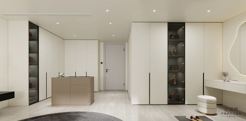 | Q: What defines the design of this Elegant Stainless Steel Walk-In Closet With Wood Grain Island And? This Elegant Stainless Steel Walk-In Closet With Wood Grain Island And is shaped around A harmonious blend of soft white doors with subtle textures and a wood-grain curved island for a warm yet modern look, Modern Style, and Multi-section wardrobe layout with integrated shelves and glass display units, perfect for organizing clothes, accessories, and luxury items. The page content points to a more resolved, project-led composition rather than a generic module set, which gives buyers a clearer view of how the product will read once installed. |