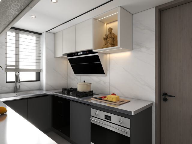 | Design Highlights The striking black-and-white color scheme delivers a modern, sophisticated look, while the linear layout optimizes every inch of narrow spaces, integrating cooking, cleaning, and storage zones into a seamless, efficient workflow. Linear (one-wall) layout - Perfect for narrow kitchens, efficiently combining cooking, sink, and storage areas into a streamlined workflow. |