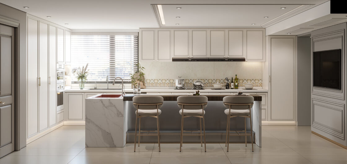 | Q: What defines the design of this French Style White Color PureLine Stainless Steel Integrated Kitchen System? This French Style White Color PureLine Stainless Steel Integrated Kitchen System is shaped around French Style. The page content points to a more resolved, project-led composition rather than a generic module set, which gives buyers a clearer view of how the product will read once installed. |