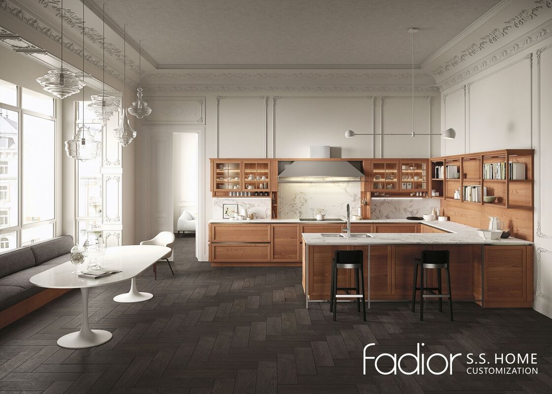 | Design Style | Modern European kitchen design combining warm wood aesthetics with architectural symmetry. |