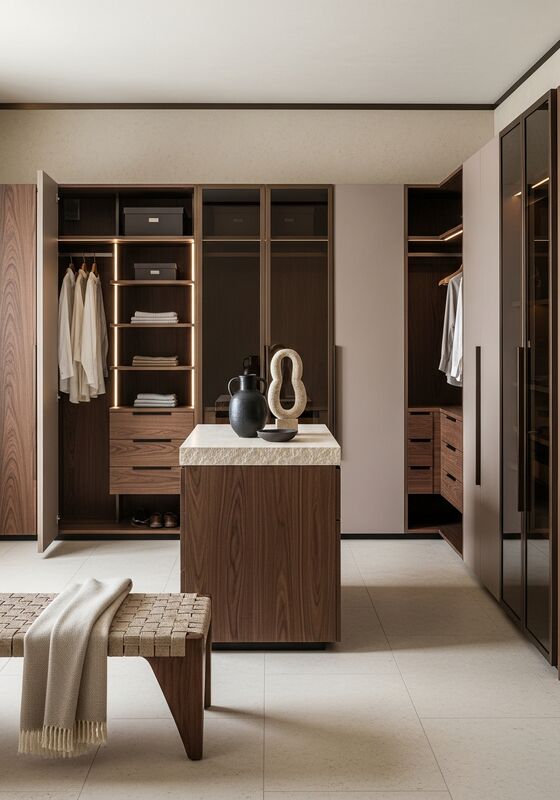 | Usage | Primary bedroom walk-in closets, hospitality suite dressing rooms, luxury residential wardrobe systems, architect-specified custom closet installations |